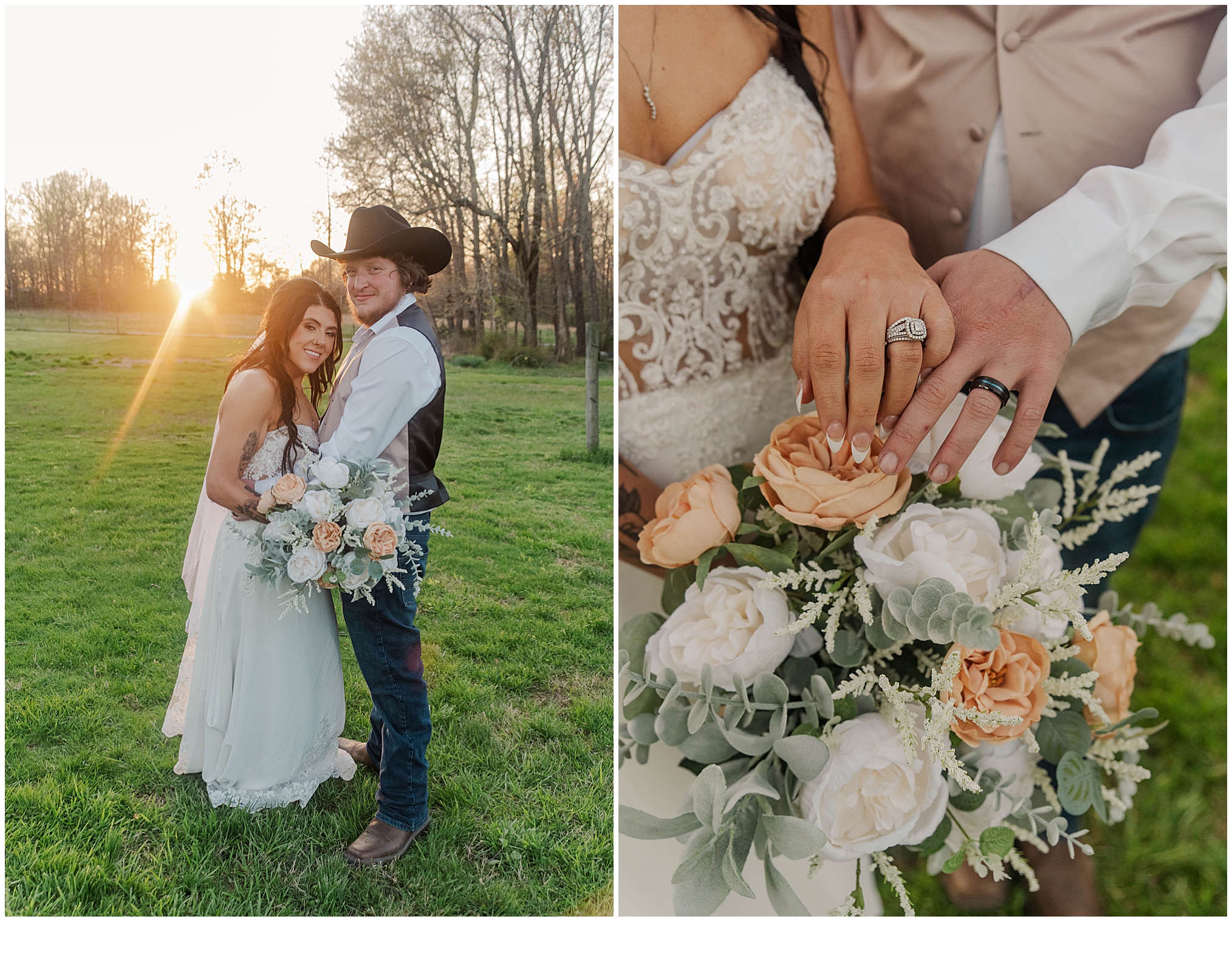 Cedar Crest is a brand new venue outside Glasgow. It’s a beautiful area and the barn is perfect for weddings and was literally just finished a day or so before the Baxter wedding. I have to say that the sunset on April 12th was nothing short of spectacular. Part of any wedding day is always scoping out where the best light is hiding out. And at Cedar Crest, late afternoon light is stunning behind the barn and house. And then the sun set took our breath away. Not every bride and groom gets a sunset because we are always at mercy of the weather. But when they do, we always steal away from the reception and grab some quick shots.